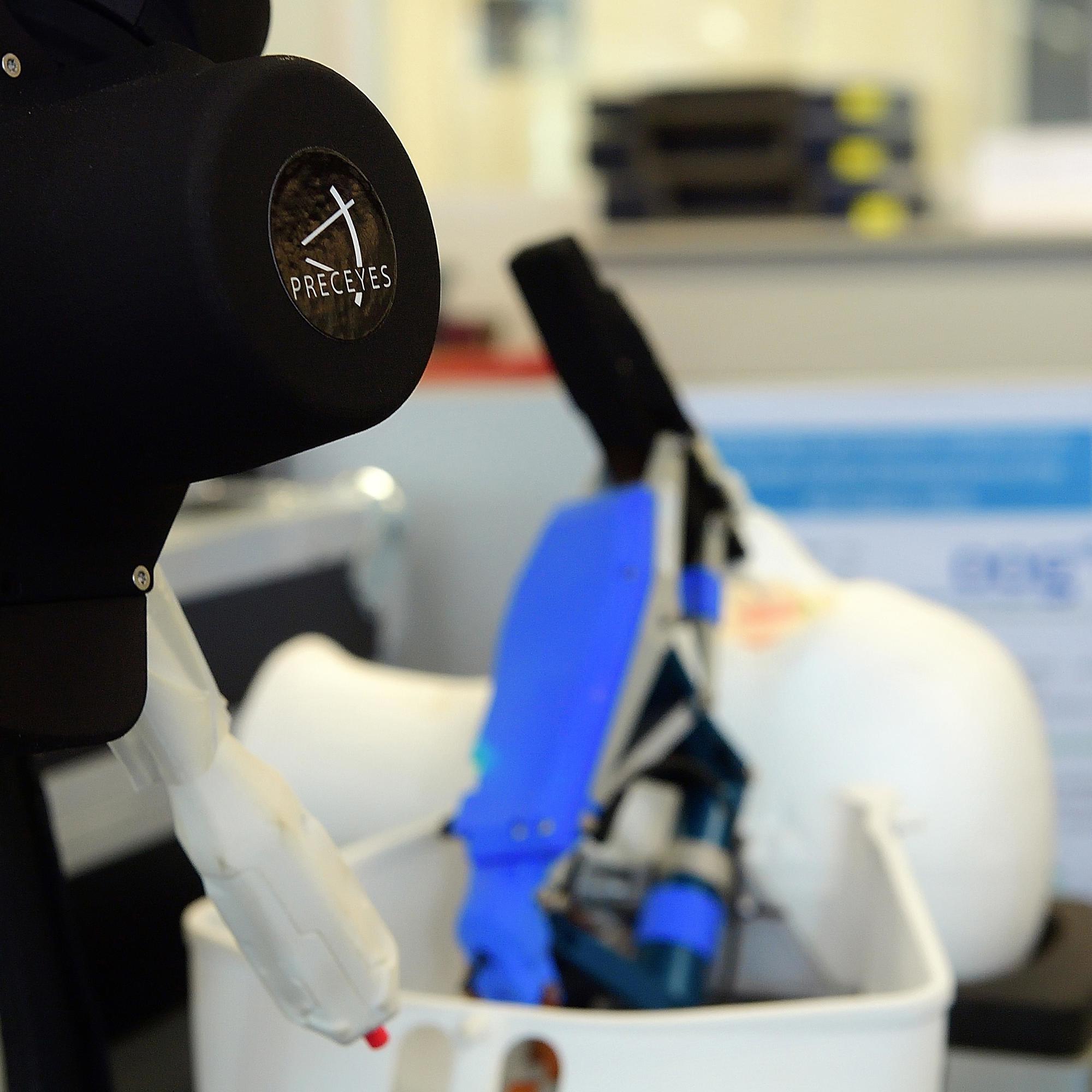 Preceyes ontwikkelt operatierobots die oogchirurgen in staat stellen om complexe behandelingen uit te voeren aan het netvlies. De chirurg bestuurt met een soort joystick een robot geassisteerde operatiearm.