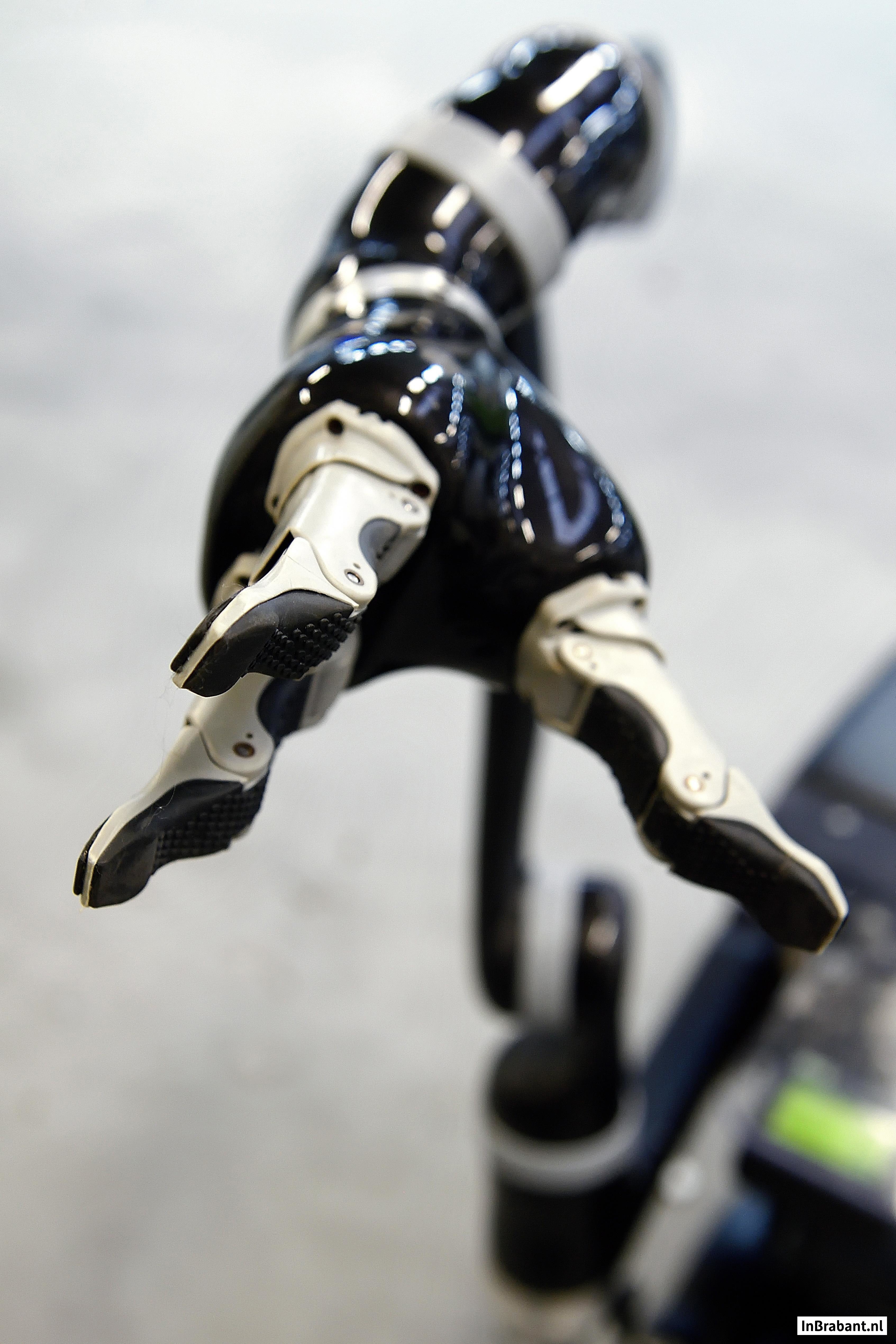 Der Roboterarm ist das Ergebnis einer Zusammenarbeit von Focal Meditech mit dem kanadischen Kinova, einem Spin-off der Universität von Montreal. Focal entwickelte sieben verschiedene Steuerungssysteme für den Arm, die sich alle an die individuellen Fertigkeiten und Bedürfnisse des Nutzers anpassen lassen. „Die Wünsche der Nutzer einbeziehen: Das ist unsere Stärke!“, meint Paul Groenland. Matthijs hat ein Riesenvertrauen in seinen Roboterarm. „Ich reibe damit in meinem Auge, dehne meinen Arm oder knacke sogar meinen Nacken damit. Und jeden Tag tue ich etwas damit, was ich davor noch nie getan habe.“ Ein Etikett vom Hundespielzeug abschneiden, zum Beispiel. „Ich habe mit meinem Roboterarm die Küchenschere aus dem Messerblock gezogen, die Roboterfinger in die Schere gesteckt und das Kärtchen abgeschnitten. Das dauert zwar, aber es klappt.“