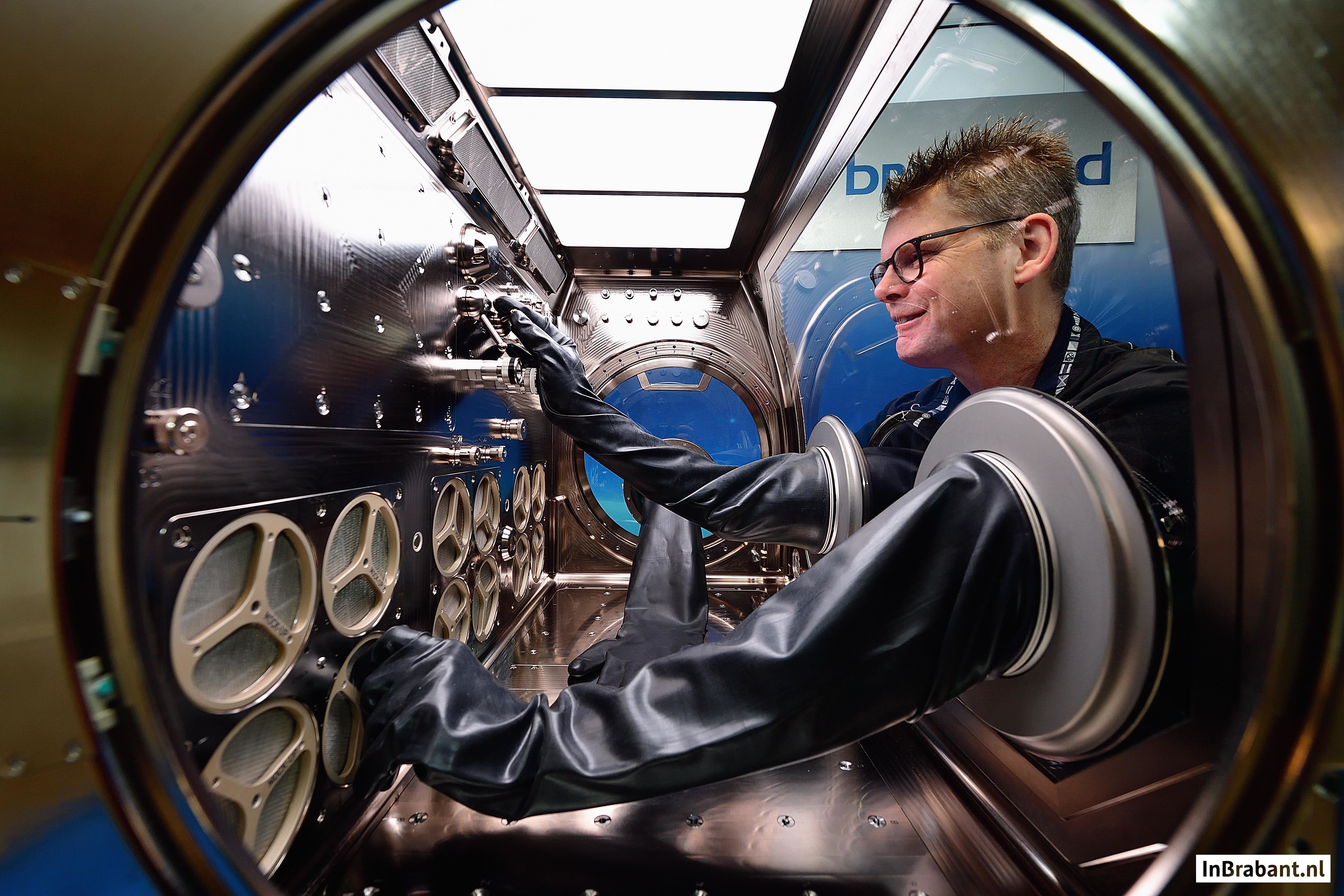 The obvious question is burning on everyone's lips. Did ‘our’ André Kuipers also work with a Bradford glovebox? Van der Kroon smiles. ‘Just a second’, he says. He quickly searches his computer and finds the photo that Kuipers tweeted back to Earth from space in January 2012, during his ISS mission. Along with his comment: ‘After 7.5 years, it's great to work with Bradford's Microgravity Science Glovebox again’. It is a memorable picture: tubs hang weightlessly from the MSG box. The box was developed for eight years before it was launched in 2001. Kuipers received a presentation from Bradford subsequently. Van der Kroon proudly says: “I worked on this glovebox between 1999 and 2002. The electronics are my work. A picture like this always gives you a kick. Our work here in Brabant will go down in the history books as a fantastic achievement.”