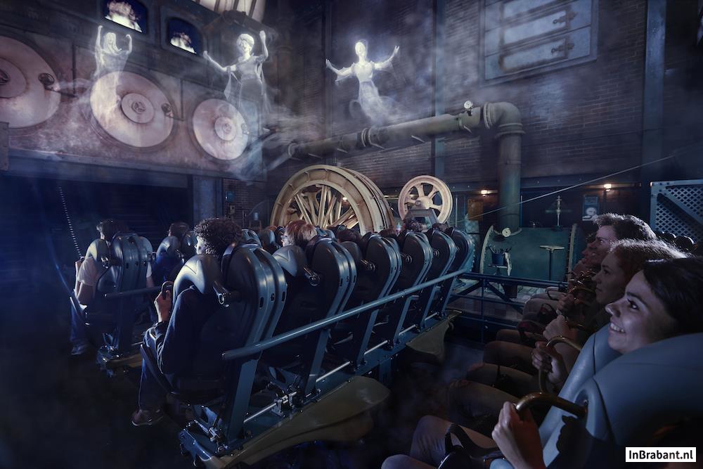 The Baron 1898 dive coaster was an important milestone for the park. This attraction focuses on the history of mining in the Netherlands and tales of the ‘Witte Wieven’, vengeful apparitions of the night in flowing white garments that have similar names in other countries. The riches hidden in the rock and soil of Baron Hooghmoed's gold mine are protected by these white apparitions. During the ride, they do their best to sabotage the gold mining activities, pushing visitors off the edge to plunge 37.5 metres down into the mine shaft. Story and experience interwoven as one.